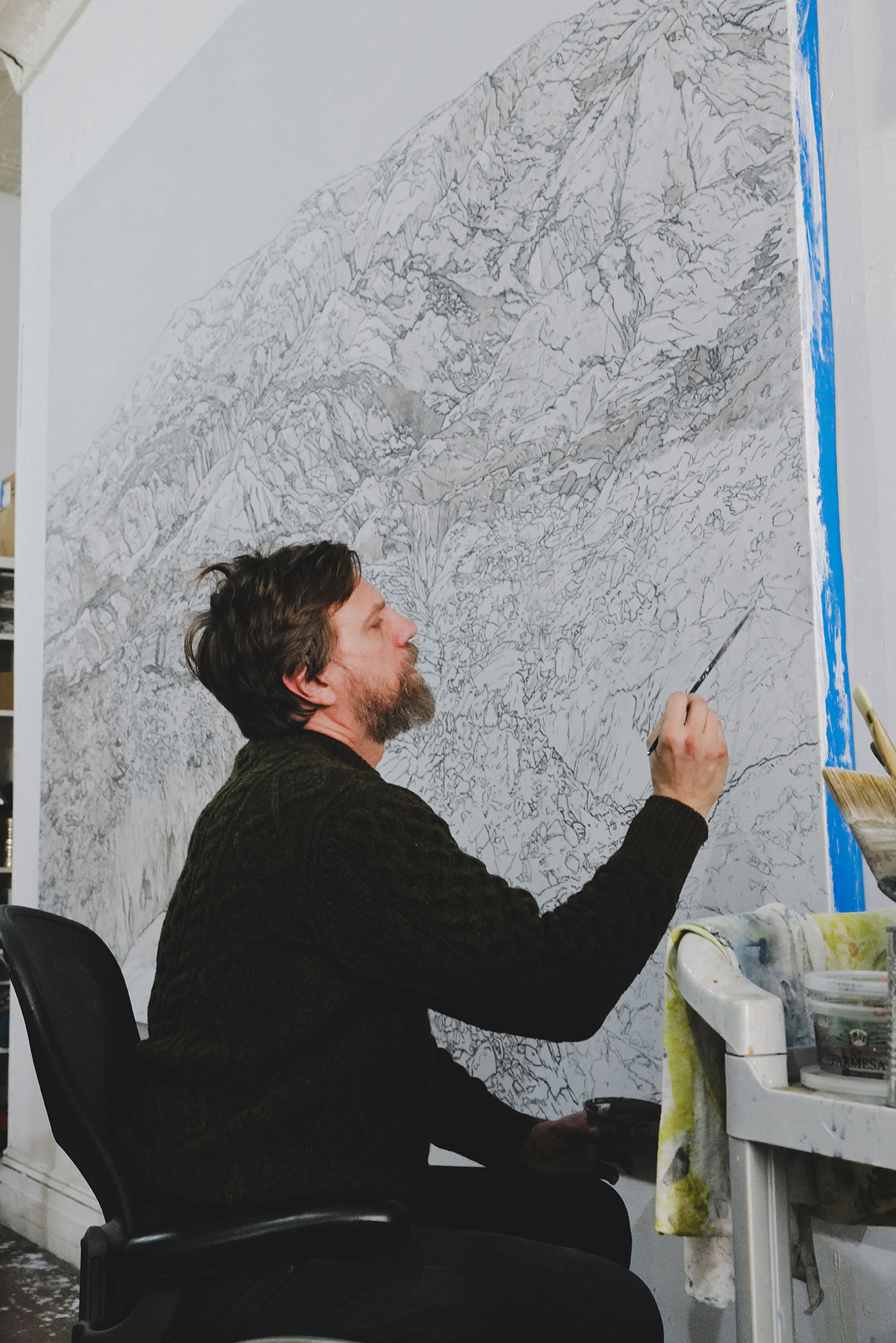 "I embark on the voyage of seeing by actively engaging with the earth—traversing its surface and transcribing its nuances by hand. I sketch out a vast terrain, humbled by its timeless reality."