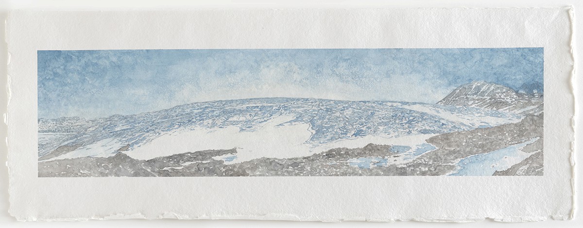 In more recent years, after completing expeditions and residencies on Svalbard, an archipelago in Norway, and in the Burren in County Clare, Ireland, Webster’s work has come full circle to his initial artistic explorations. He has created a new visual and thematic vocabulary, a true successor of plein air painting and the philosophical and artistic traditions and practices of the 18th and 19th centuries. As our relationship with nature and our surroundings have become less symbiotic, Webster has tirelessly sought to document and record this evolution. Deeply personal though tethered to humanity, his works are intimate and experiential, placing mankind in a position of self-awareness as mere visitors in some of the most ethereal pockets on the planet. Webster recognizes that it is imperative to capture and record these landscapes by human hand, and not by machine. His paintings are precious yet evocative respite from the overly populated and pillaged planet we inhabit. Webster reminds us that glaciers, stone, and humans all co-exist, and call the same planet home.