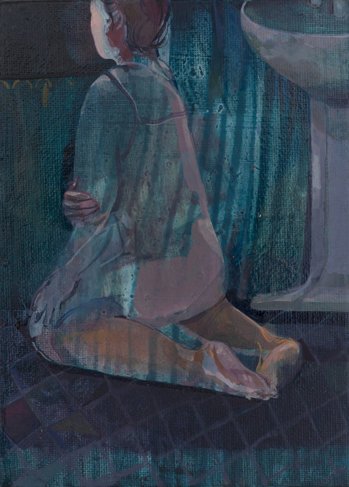 Central themes in the paintings of Joana Galego are memory and isolation, wonder and curiosity, and moments of gathering and connection. Galego combines observational drawing, imagination, and drawing from reference photos, often starting from a personal experience. “Surprise and mystery are important to me. I look for images that deeply engage the senses, mind, and, for lack of a better word, the spirit. I’m particularly interested in making work that asks questions rather than making statements.” She uses techniques like layering and collage, evoking how memories can be selective and transient.