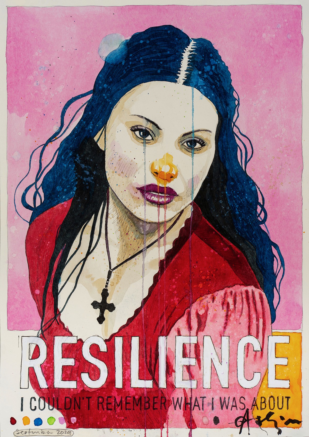 Influenced by comic book writers and artists such as Milo Manara, Enki Bilal, and Jean Giraud, in the mid-1980's, Aakjær fulfilled a childhood dream by publishing an album at Carlsen, Denmark's premier comic book publisher at the time, and went on to operate an illustration studio in 1992. After decades working in advertising and design, Aakjær pivoted to the production of fine art and turned to watercolor painting in 2014. With a nod to his previous career in advertising, his use of oversized keywords, and large scale watercolors are distinctive and unique to the artist. The delicate nature of combining watercolor and ink leaves a tiny margin for error, and the artist's desired result must be achieved upon the first application. In many respects, the instantaneous nature of the mixed mediums is where the poetry in Ole Aakjær’s work lies.