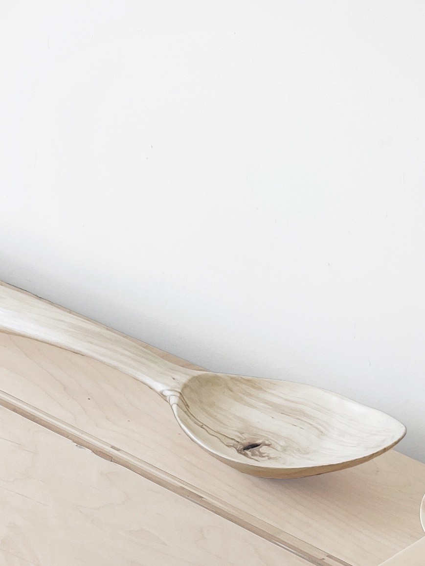 Locally salvaged spalted birch, steel hook