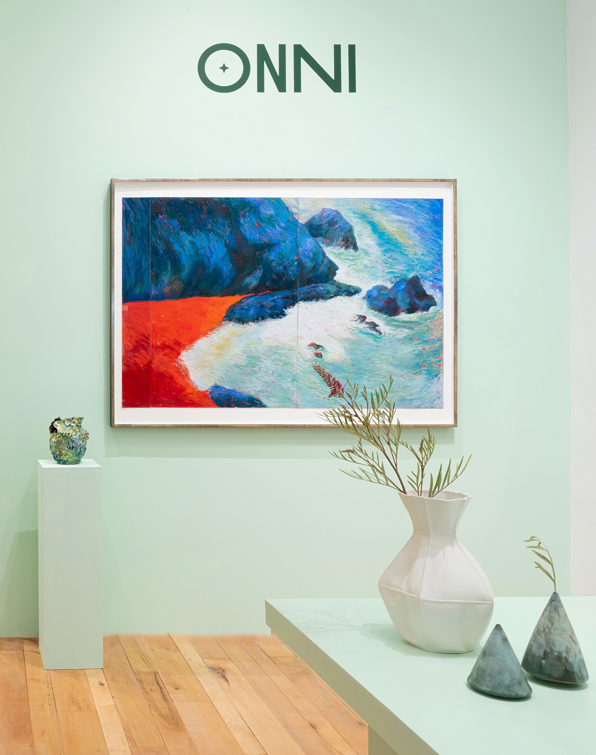 "Red Beach" is the result of sustained observation of a singular coastal view in the Channel Islands. Summerfield was captivated by the transient patterns of the tide, and worked from many drawings made on site, as well as from memory and imagination. He captures the extraordinary drama of nature – the restlessness of the sea, and the permanence of rock.