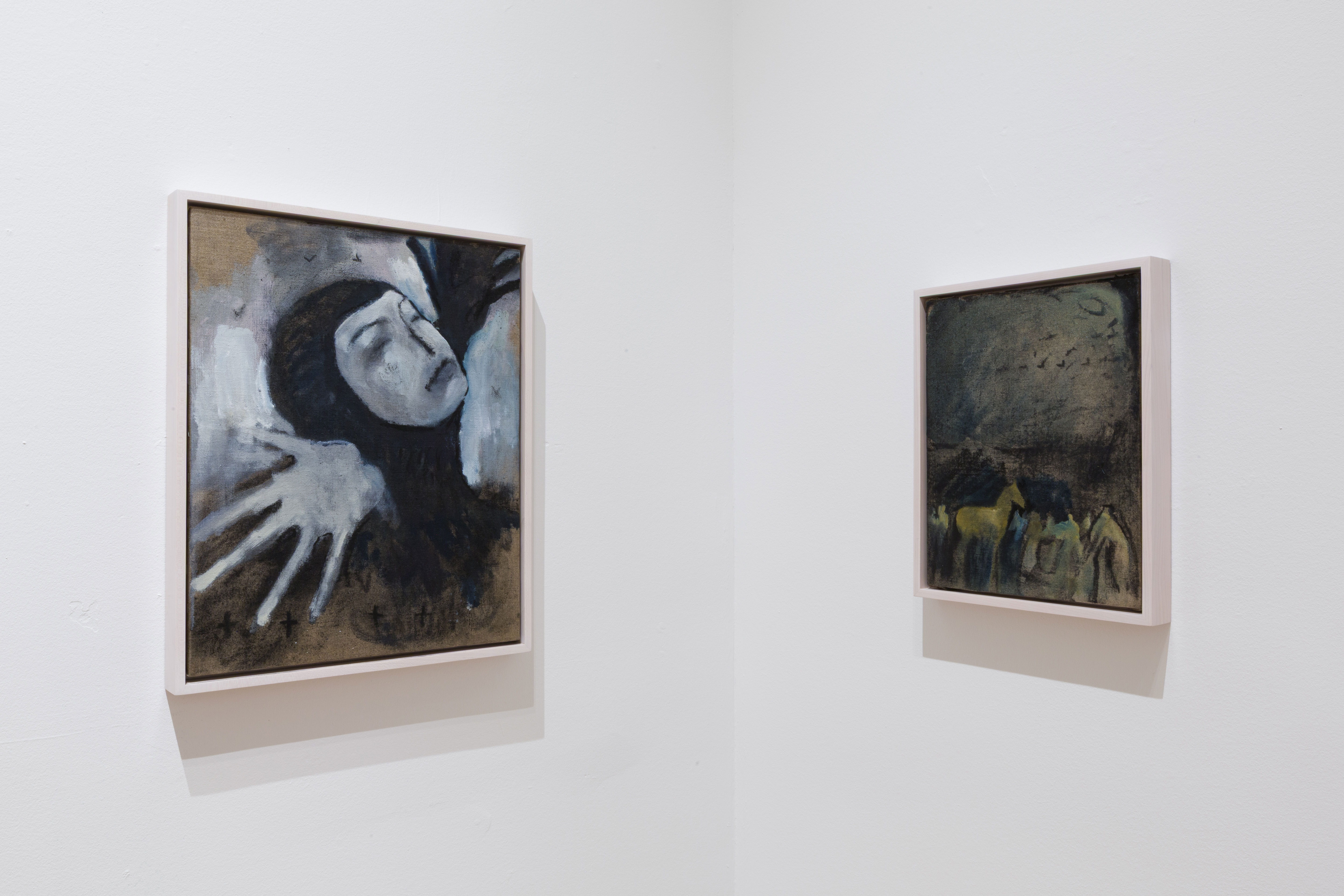 Charcoal, oil, and acrylic on linen mounted on board