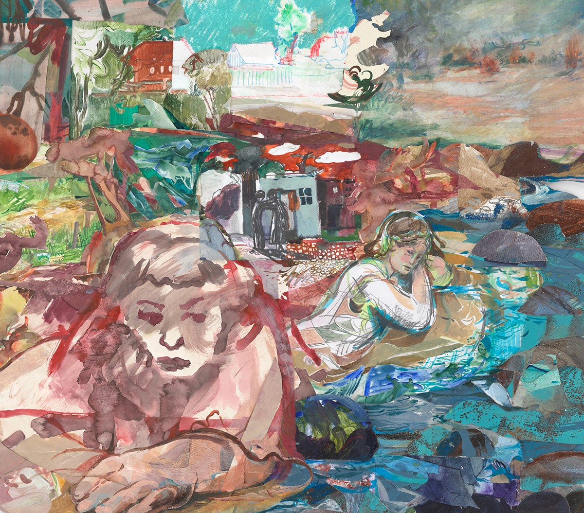 Acrylic, watercolor, color pencils, graphite, and oil pastel on paper