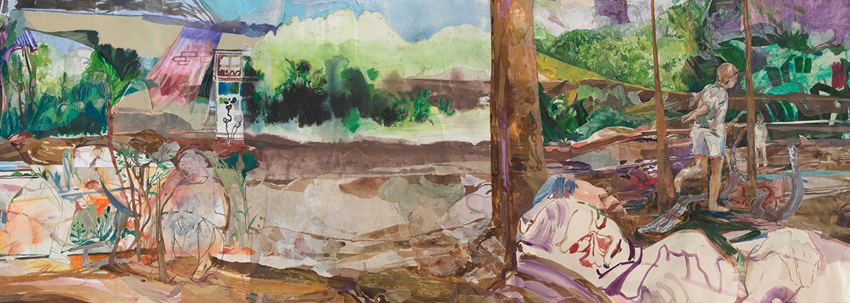 Acrylic, watercolor, color pencils, graphite, and oil pastel on paper
