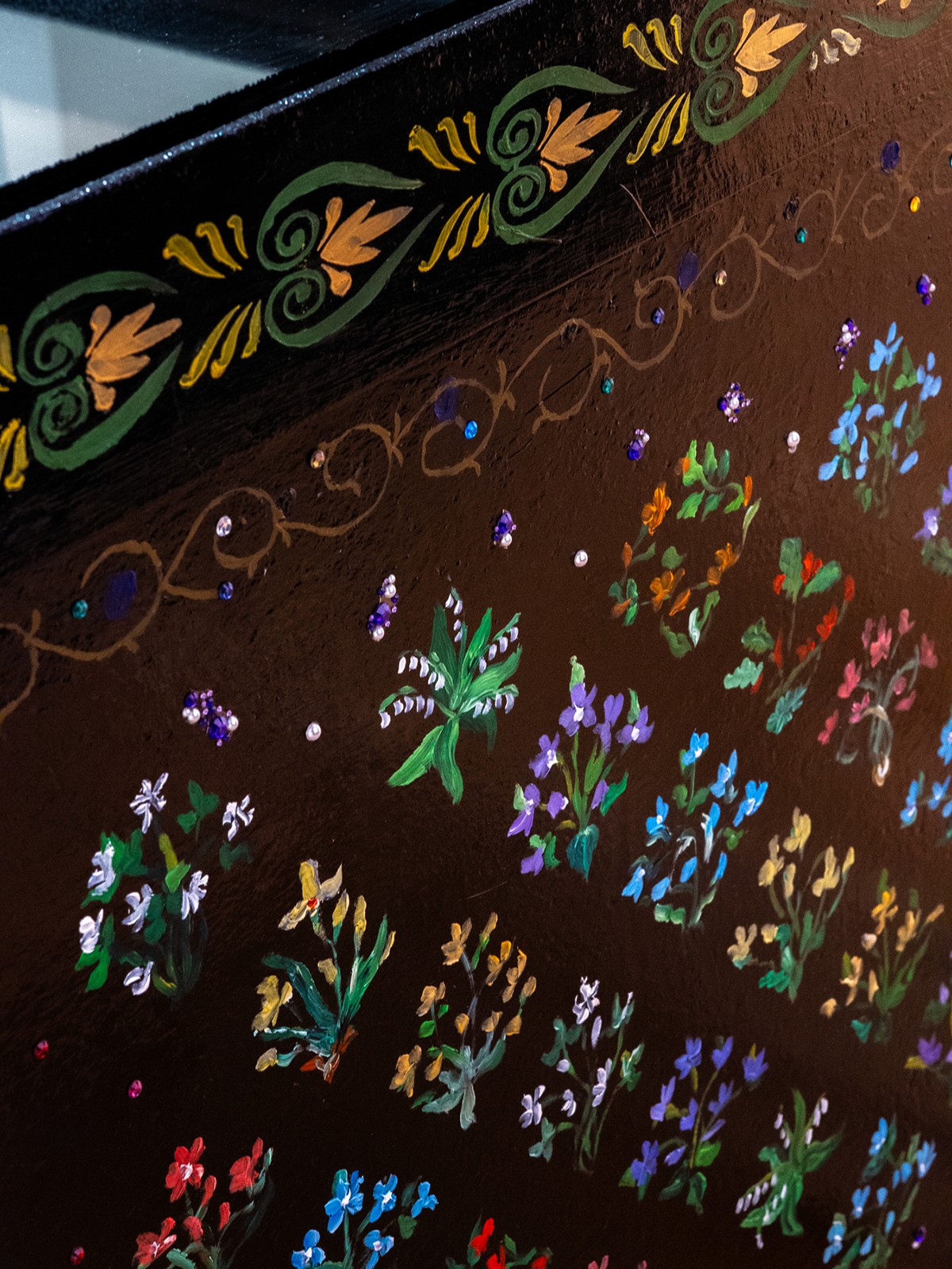 Iron, mirror glass, and oil paint