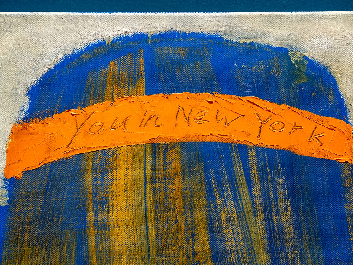 This self-portrait is a confessional exploration of belonging, shaped by Liu’s experience as a Chinese American artist whose first language is Chinese. Navigating the notoriously exclusive New York City art world, Liu positions himself in this painting like a tourist wearing the “I Heart New York” t-shirts sold in souvenir shops. The phrase “You in New York” written across the orange headband gestures toward a camp aesthetic, capturing both the context of an artist attempting to assimilate and a reflection of an unshakable sense of otherness.