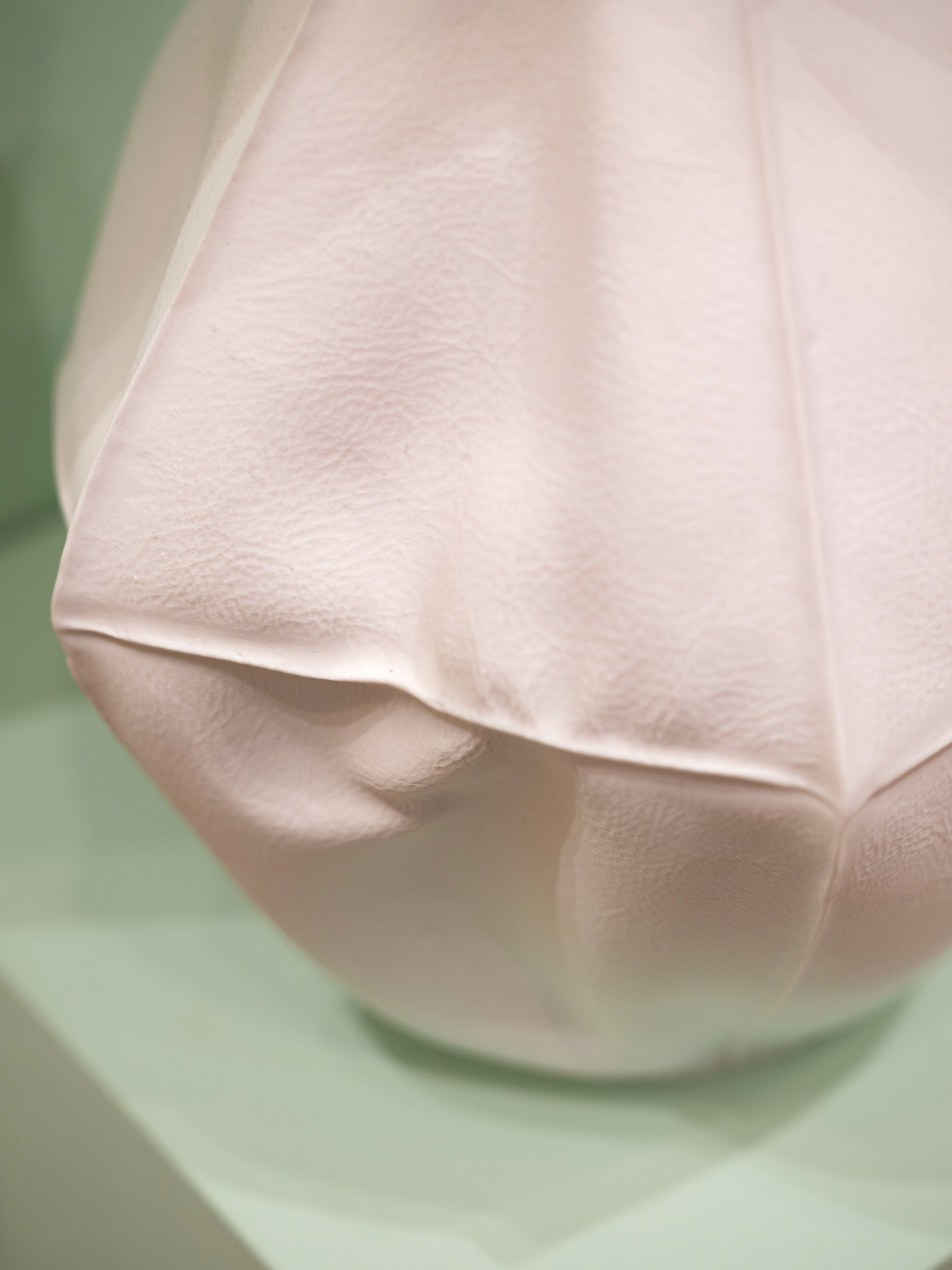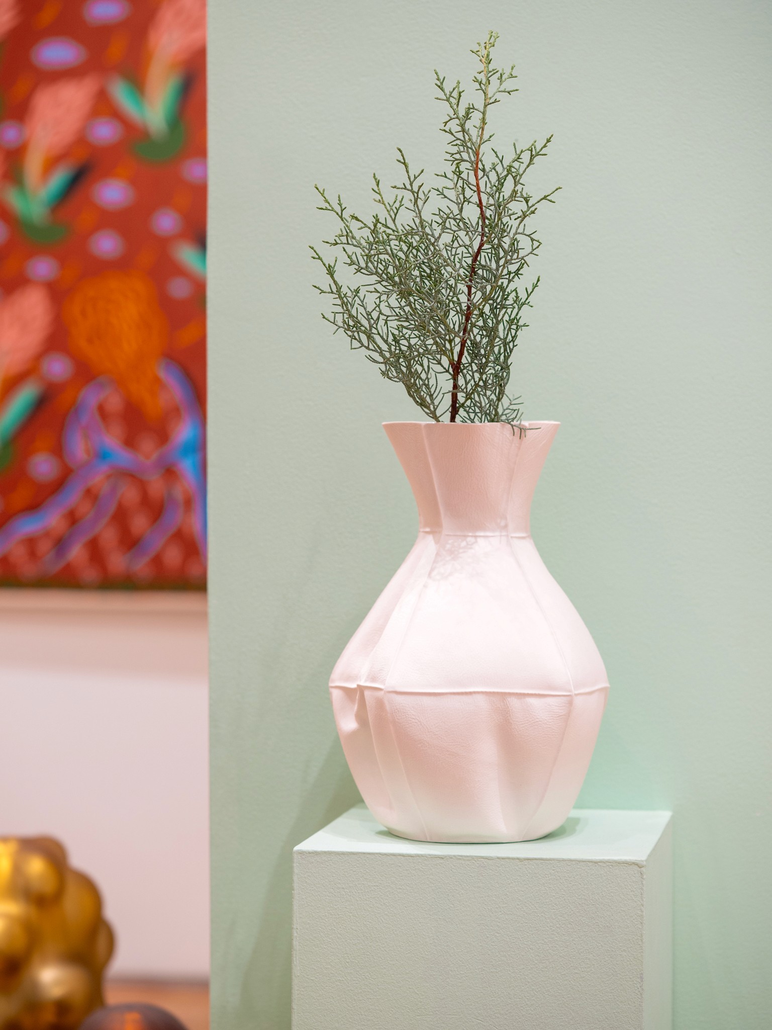 Each vase begins as a simple sketch, which is then turned into a hand-built leather mold. After the mold is cut, sewn, and prepared, liquid porcelain is poured inside—capturing every contour, texture, and stitch in its final form.