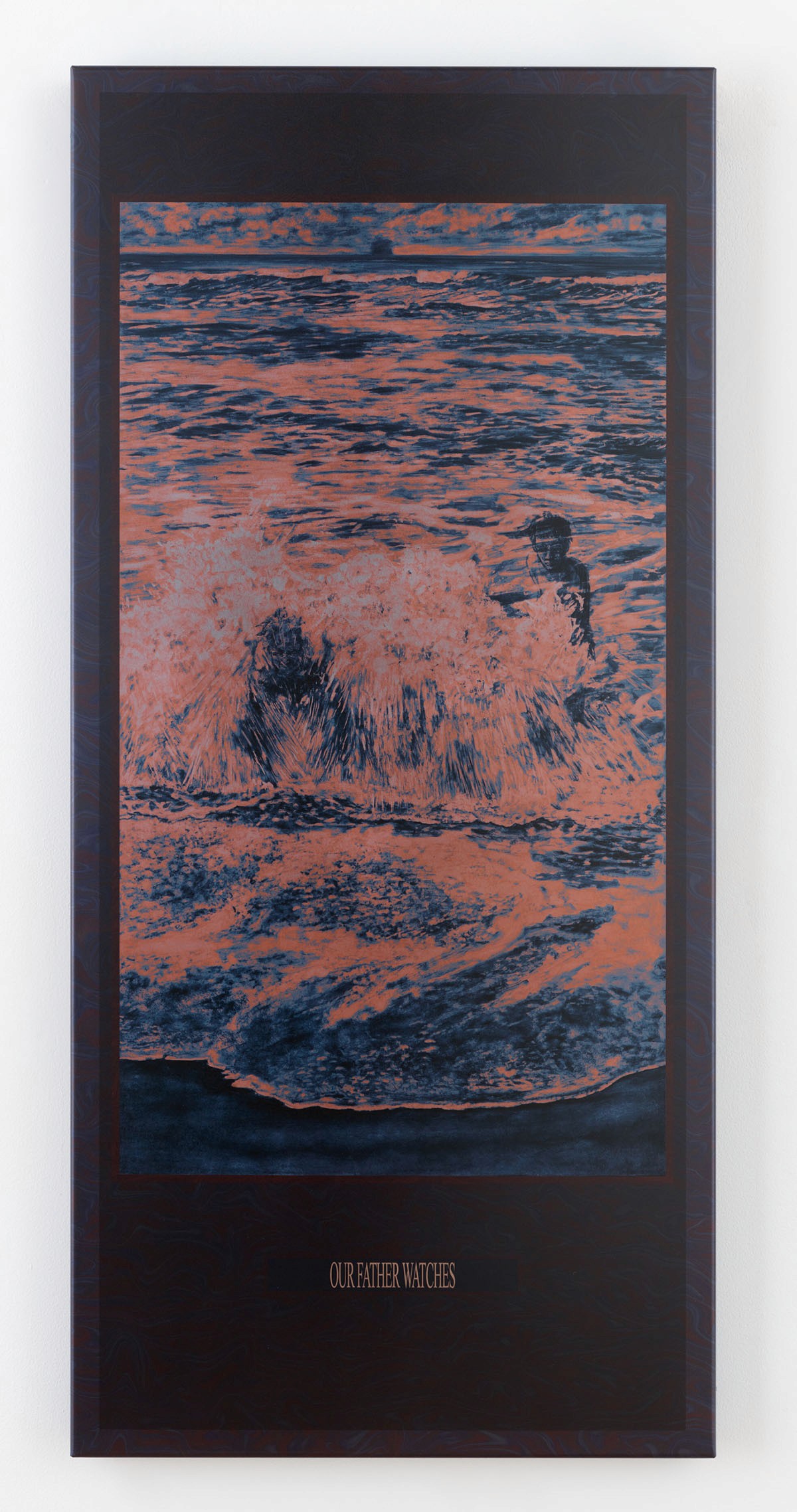 UV ink print, spray paint and stainless steel on wood panel (Unique)
