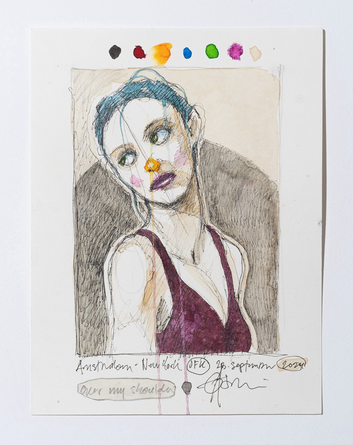 Watercolor, collage and ink on paper