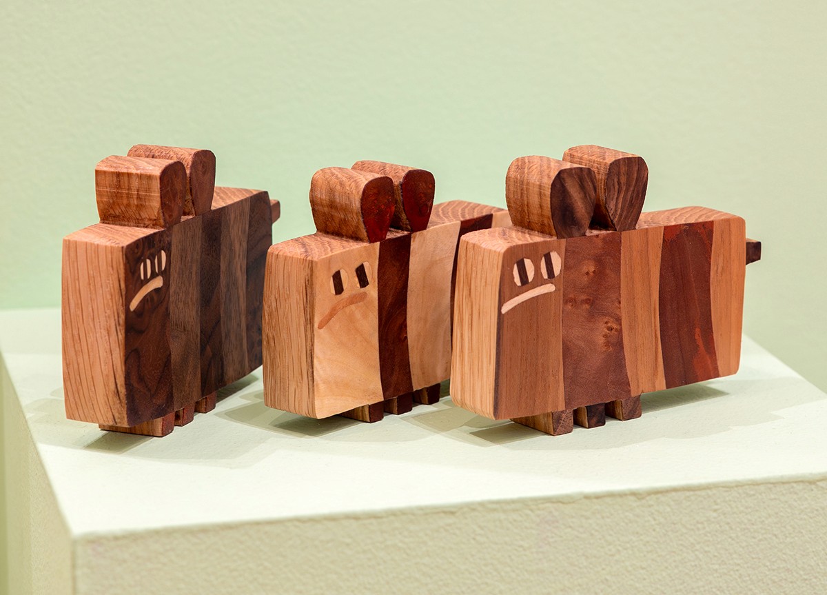 These wooden bees originated during a Finnish summer, when the artist spent a week at the cottage of a beekeeper. He would carve bees out of firewood, which developed into a series of work that would go on to exhibit in galleries, and even on a restaurant bar top in Helsinki.