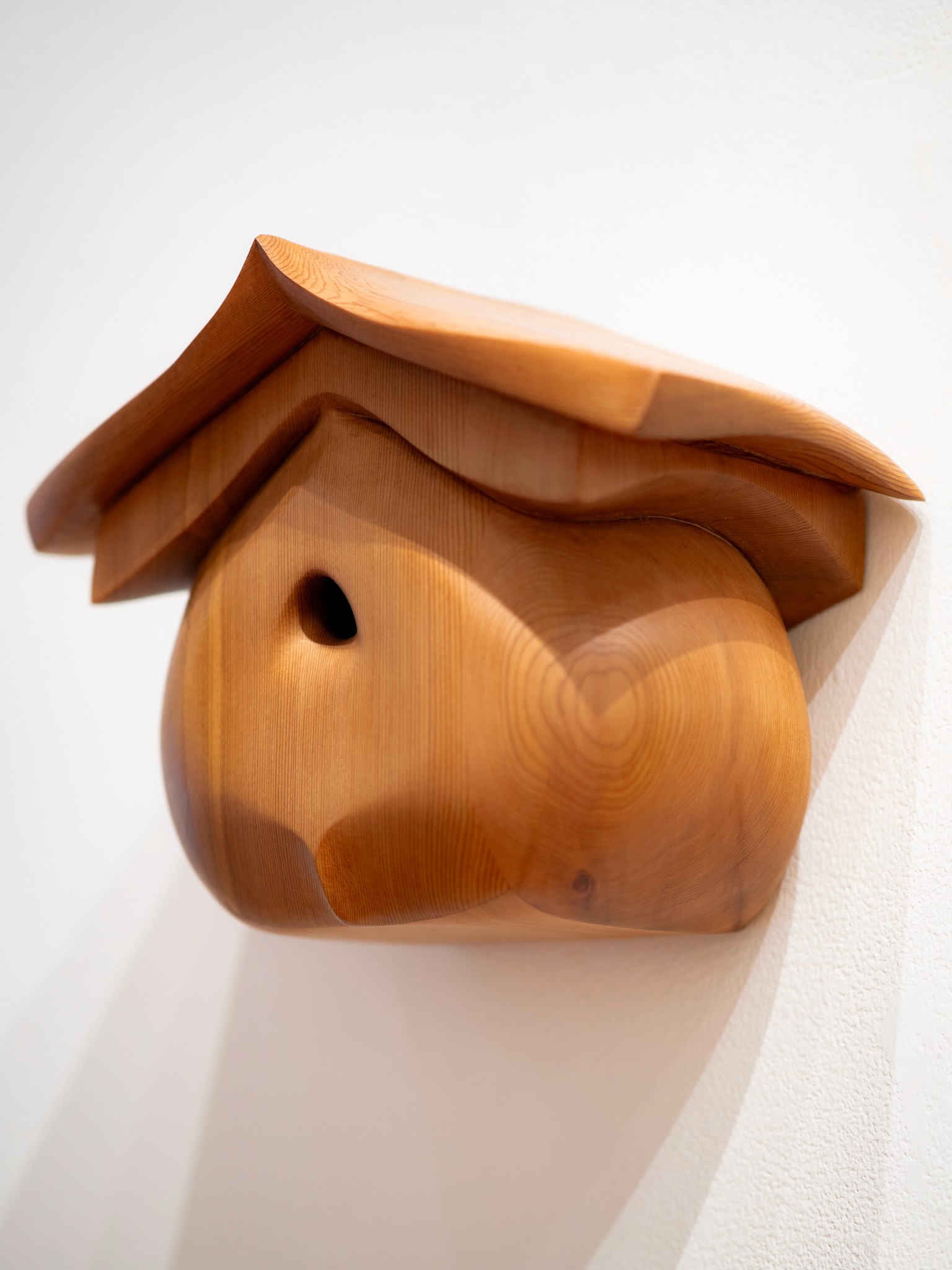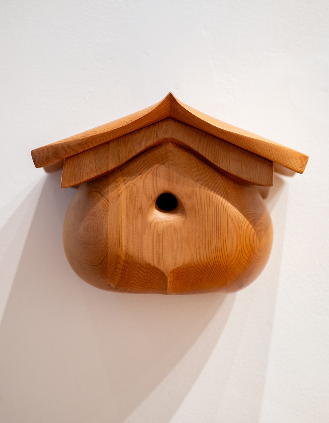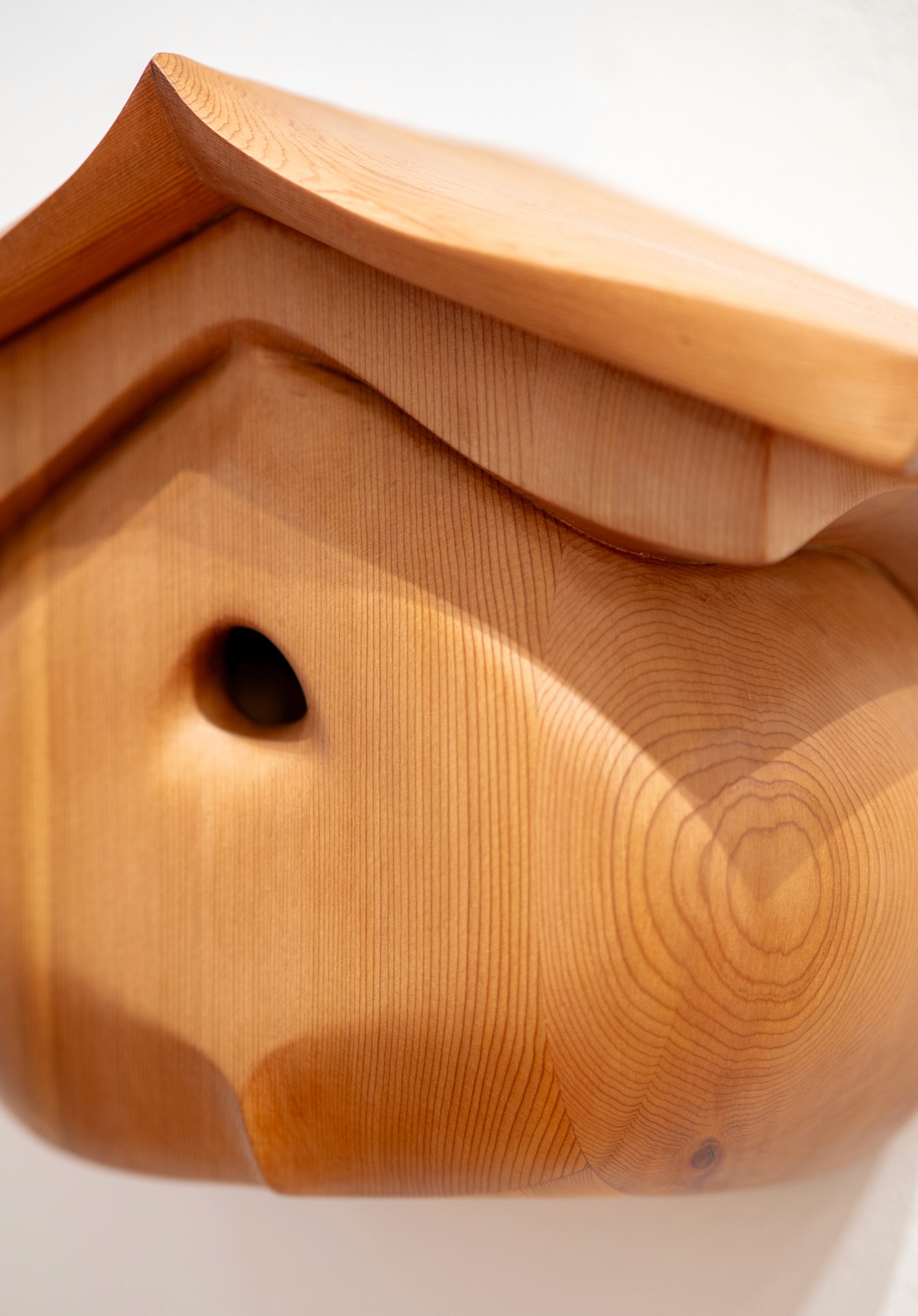 With deep family roots in lodging, Canadian artist Shayla Giroux has an outstanding ability for wood carving. This sculptural birdhouse is an ode to home – both the ones we build and the ones we came from.