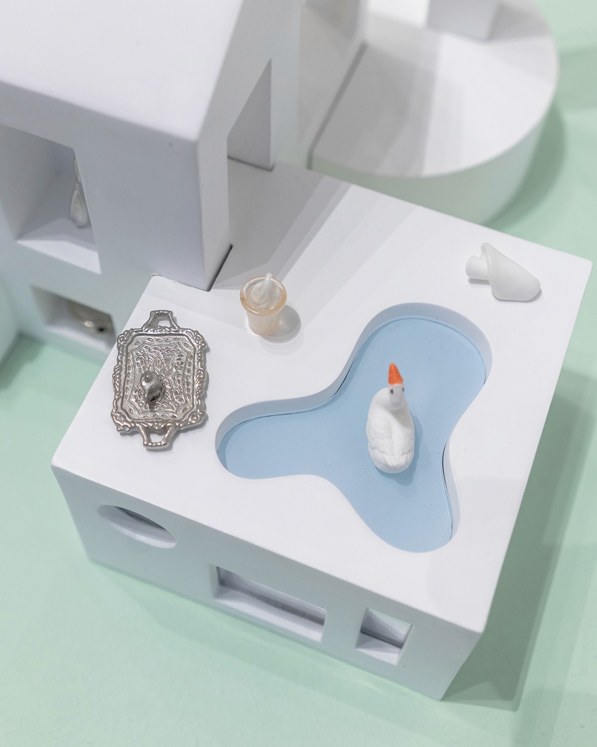"Just For Fun" was inspired by the fantasy worlds Sophie Collé began designing during a boring day job in 2018. Composed of more than 100 individually hand-assembled parts, the piece is meant to invite play and interaction, channeling the whimsy and uninhibited joy of childhood.