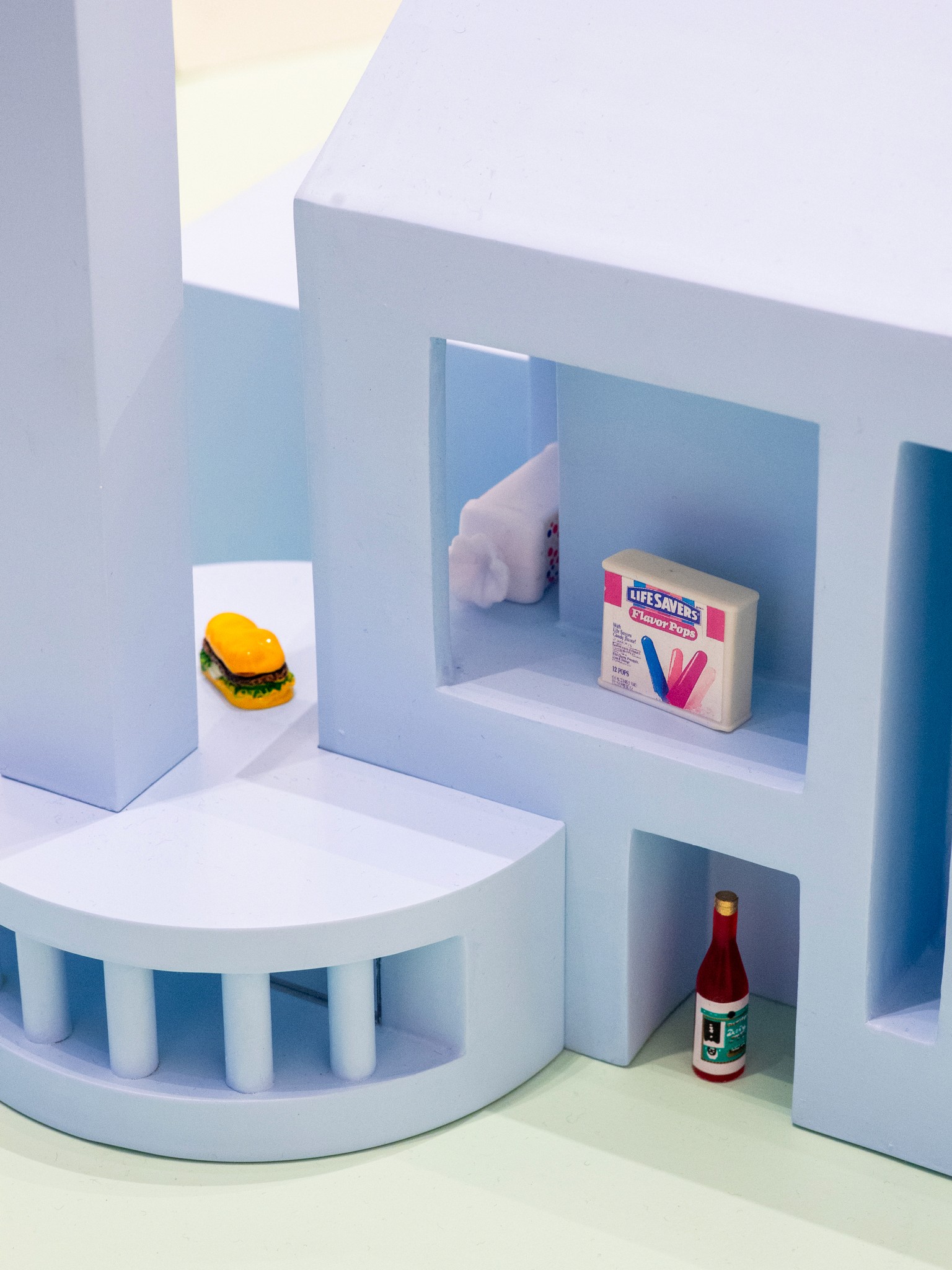"Just For Fun" was inspired by the fantasy worlds Sophie Collé began designing during a boring day job in 2018. Composed of more than 100 individually hand-assembled parts, the piece is meant to invite play and interaction, channeling the whimsy and uninhibited joy of childhood.