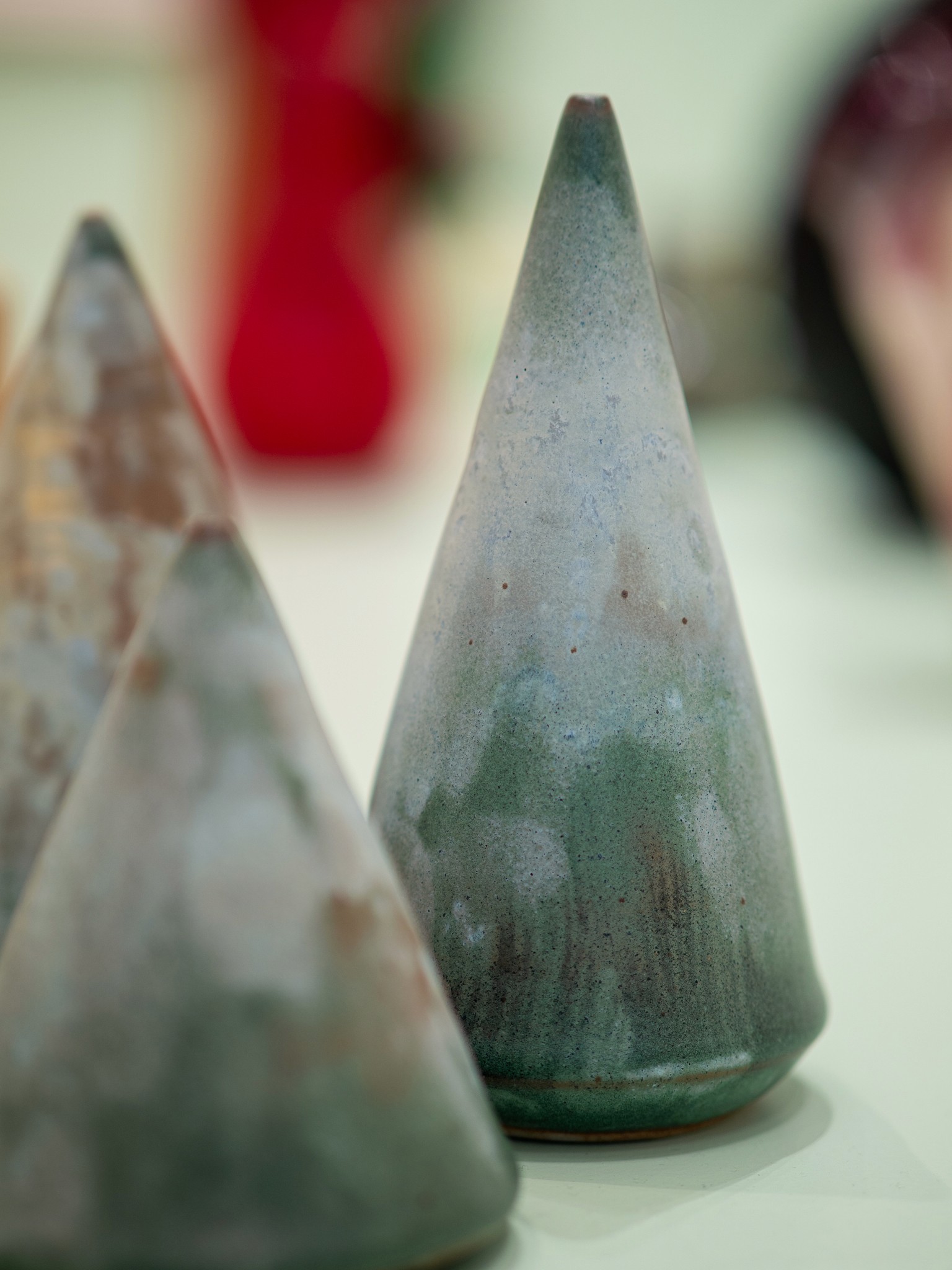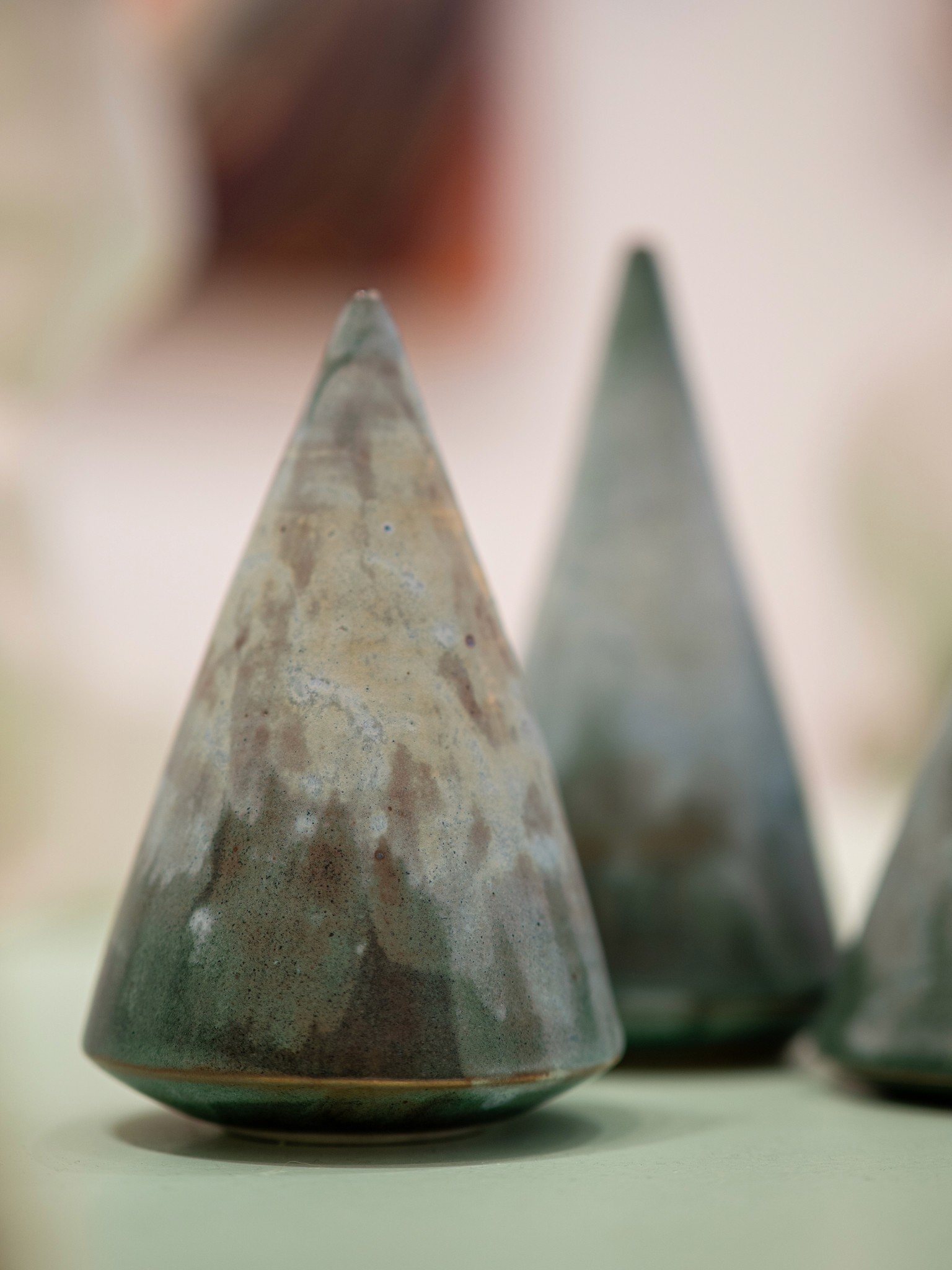 Vy Voi’s evergreen tree vases are hand-built in stoneware, their conical forms echoing the quiet strength of trees and the rhythm of natural growth. Created by Steffany Tran the pieces reflect her belief in tenderness as a design principle—inviting care, presence, and a sense of rootedness into everyday life.